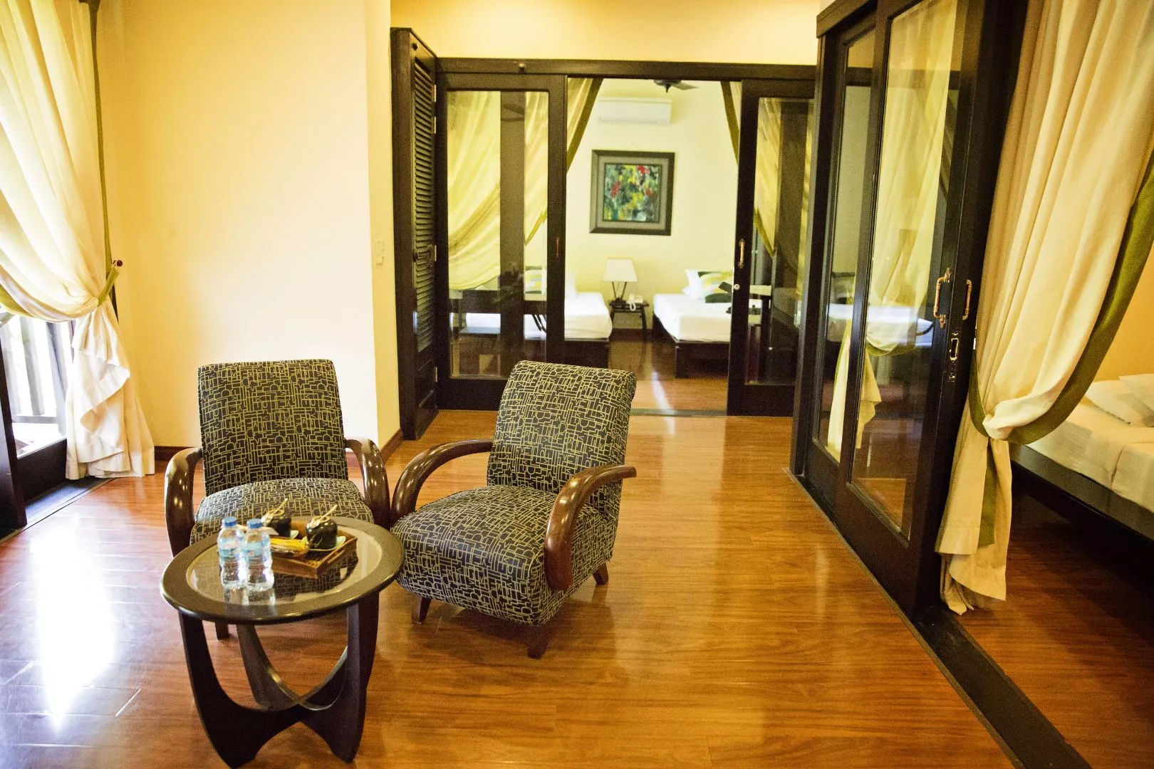 - Deluxe Family Garden View Room — просторные семейные номера площадью 64 кв.м, с видом на сад, состоящие из спальни с одной двуспальной кроватью или двумя односпальными кроватями Twin, уютно обставленной большой гостиной зоны, рабочей зоны с письменным столом, современной ванной комнаты, частного балкона.
