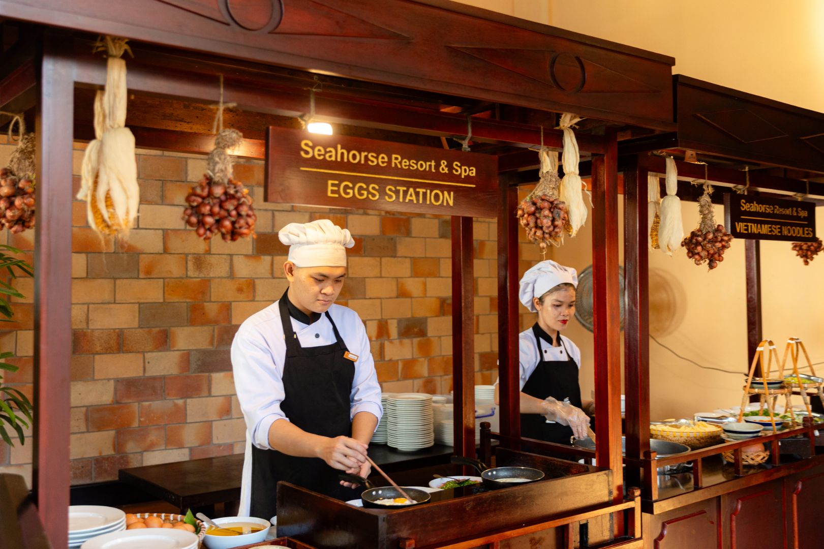Каждый день в Seahorse Resort & Spa у вас есть возможность познакомиться со знаменитыми блюдами Муйне и Фантхиета. Шеф-повара предоставят вам прекрасную возможность освоить традиционные навыки вьетнамской кухни и научиться готовить свежие морепродукты.