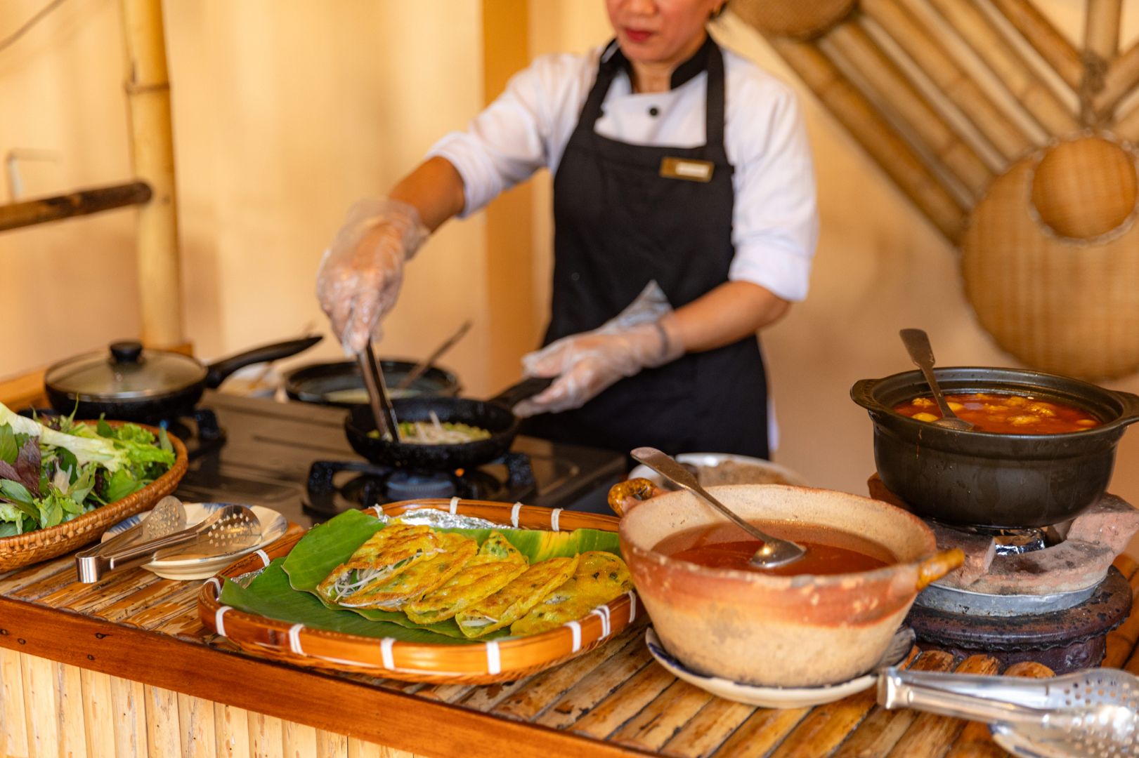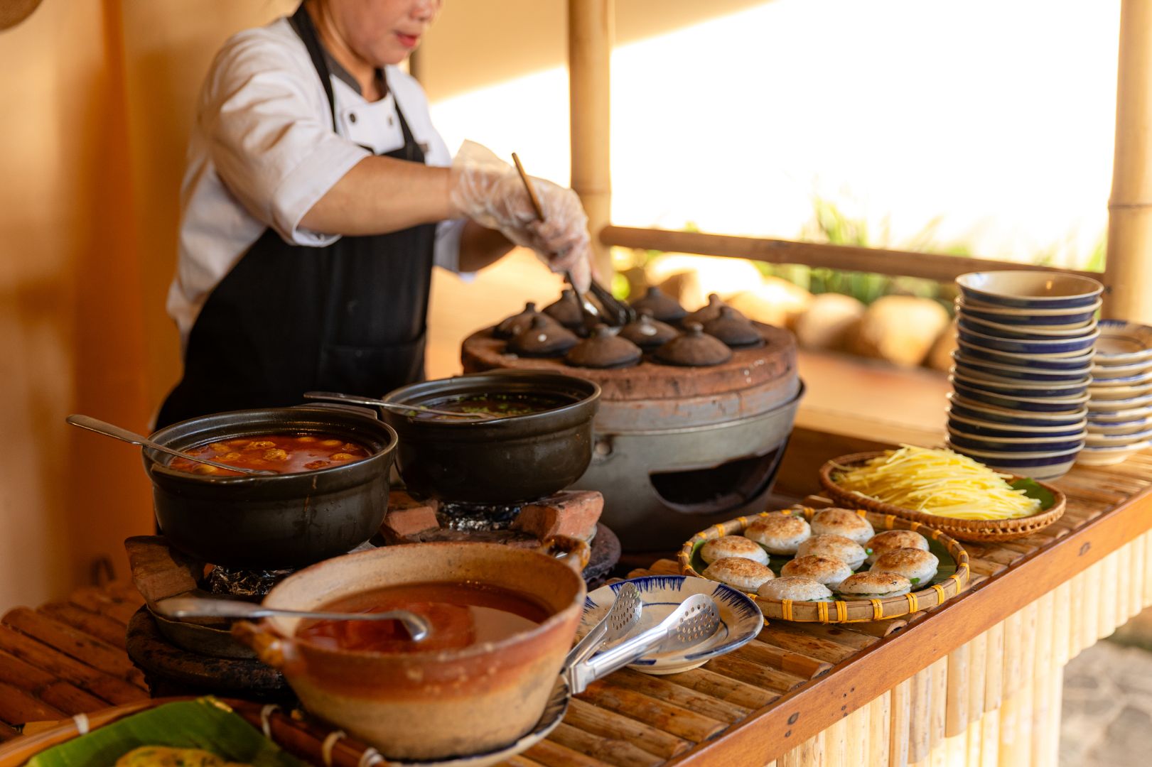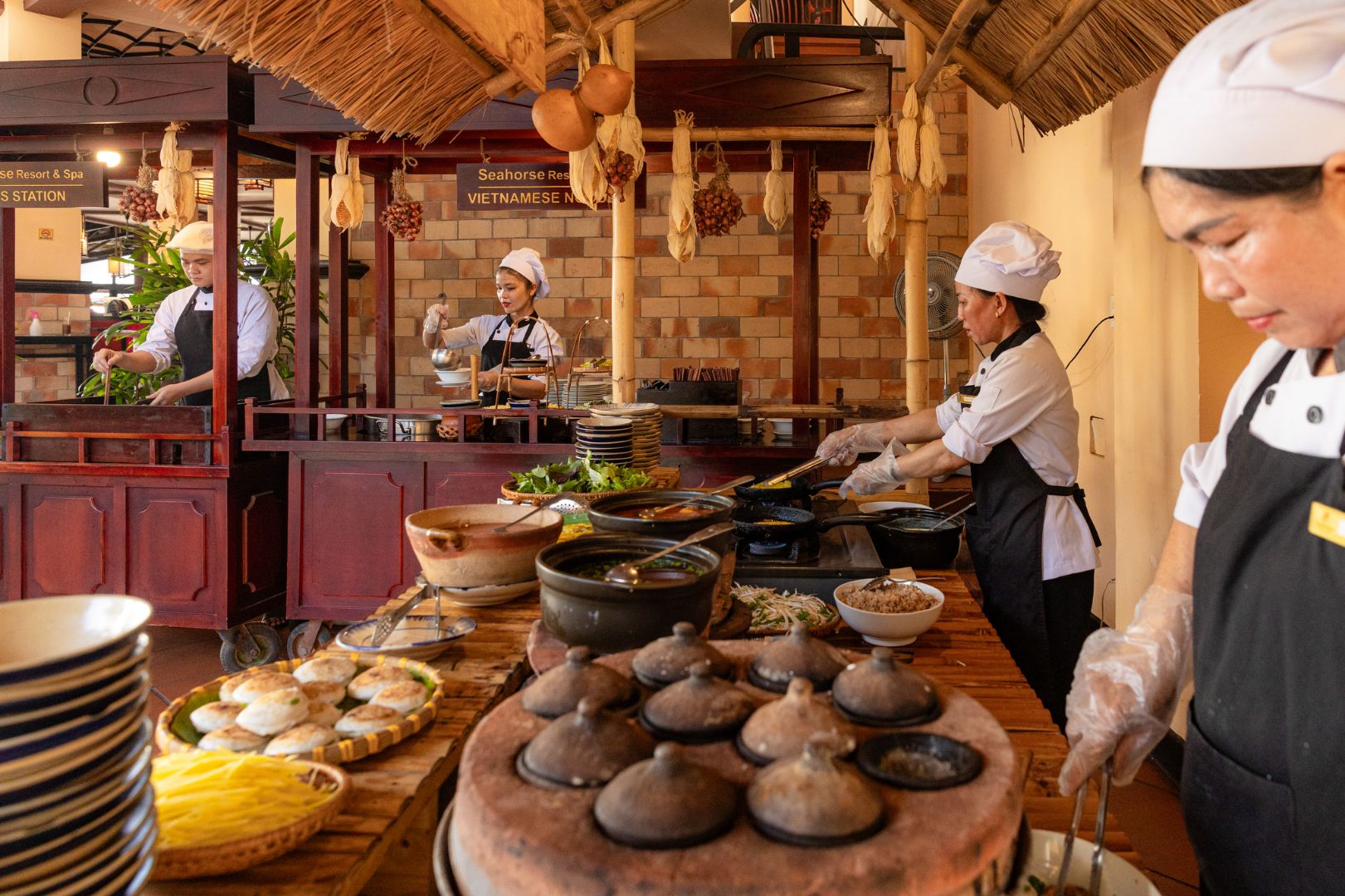 Lau Tha Seahorse (разновидность вьетнамского хот-пота) – приготовленное из свежайших ингредиентов из моря провинции Биньтхуан фирменное блюдо Фантхьета, являющееся не только кулинарной эмблемой курорта, но и считается ‘душой’ кухни Фантхиета — места, где вкусы моря сочетаются с сутью вьетнамской культуры. Блюдо состоит из свежих нарезанных анчоусов (или мелкой рыбы), тщательно приготовленных поварами Seahorse, в сочетании со свиной грудинкой, жареным яйцом, зелеными овощами, манго, огурцом и слегка сладковатым бульоном из креветок, мяса и помидоров. Все это искусно подается на бамбуковом подносе, выстланном зелеными банановыми листьями, создавая яркую кулинарную картину, в полной мере отражающую природную красоту прибрежного региона. Lau Tha — это не просто блюдо, это также воплощение вьетнамской кулинарной философии, основанной на пяти элементах — гармонии металла, дерева, воды, огня и земли, соответствующей пяти вкусам: острому, кислому, горькому, соленому и сладкому.