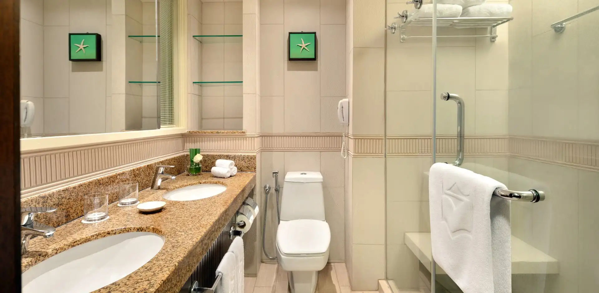 Во всех номерах имеется: оснащенная комплектом премиальных туалетных принадлежностей от Shangri-La ванная комната, SMART-телевизор 43″ со спутниковыми каналами, прямой телефон с голосовой почтой, запирающийся шкафчик, мини-холодильник, принадлежности для приготовления кофе и чая, USB-розетки, доступ в высокоскоростной интернет Wi-Fi. По запросу доступно меню подушек.
