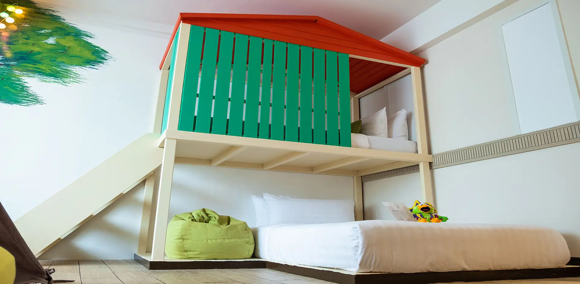 Кровати Murphy предназначены для детей. Если вы путешествуете с детьми, пожалуйста, запросите кровать Murphy при бронировании. Обратите внимание, что кровати Murphy установлены не во всех номерах. Номера с кроватями Murphy предоставляются при наличии. - Superior Family Combo Room — улучшенный семейный номер площадью 36 кв.м с видом на окрестности пригорода Бату Феринги. Семейный номер представляет собой два смежных номера: один номер с кроватью King-size для родителей и одна ‘комната приключений’ для детей, оборудованная лофт-кроватью в стиле домика на дереве с двумя кроватями и палаткой-трансформером с односпальной кроватью. Две ванные комнаты оборудованы ванной с душем.