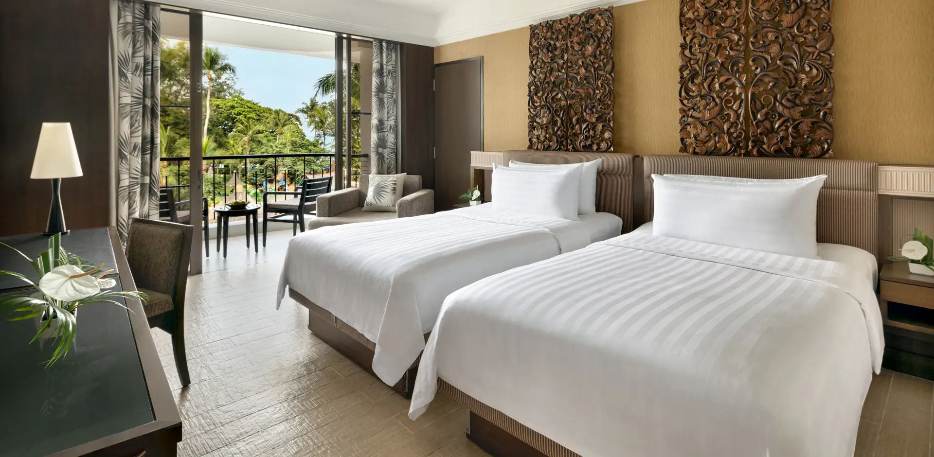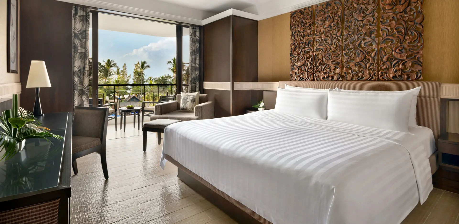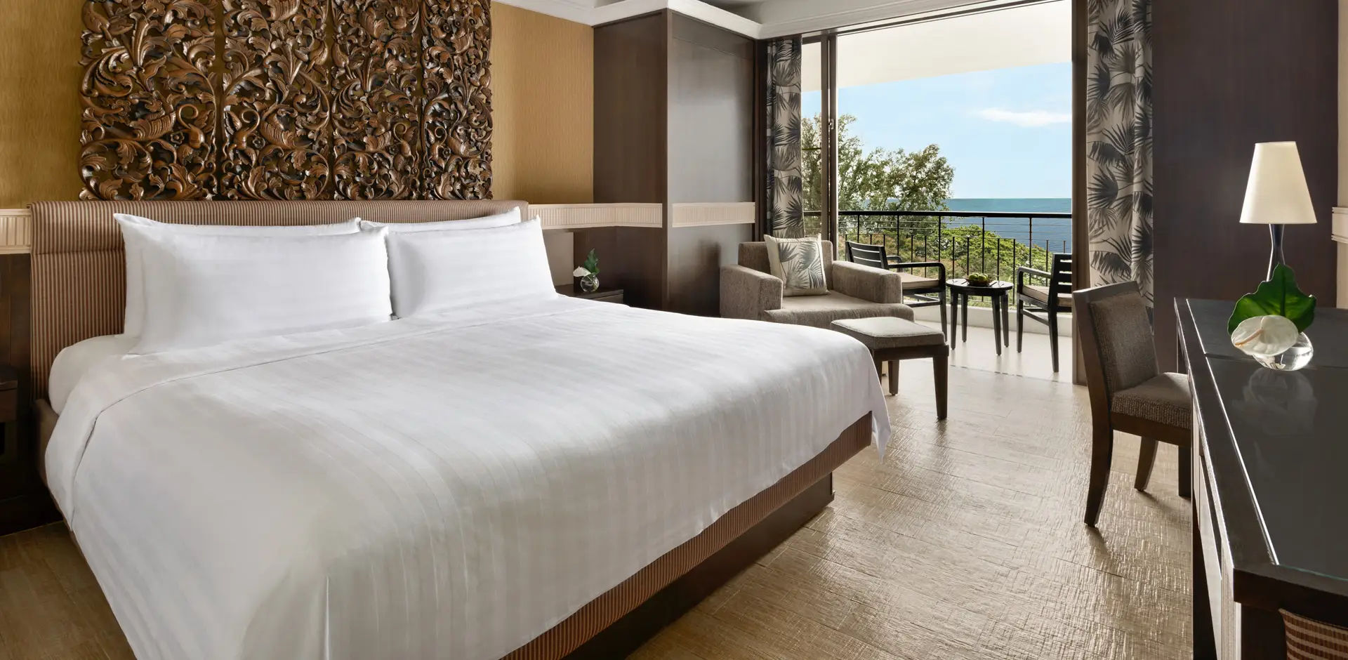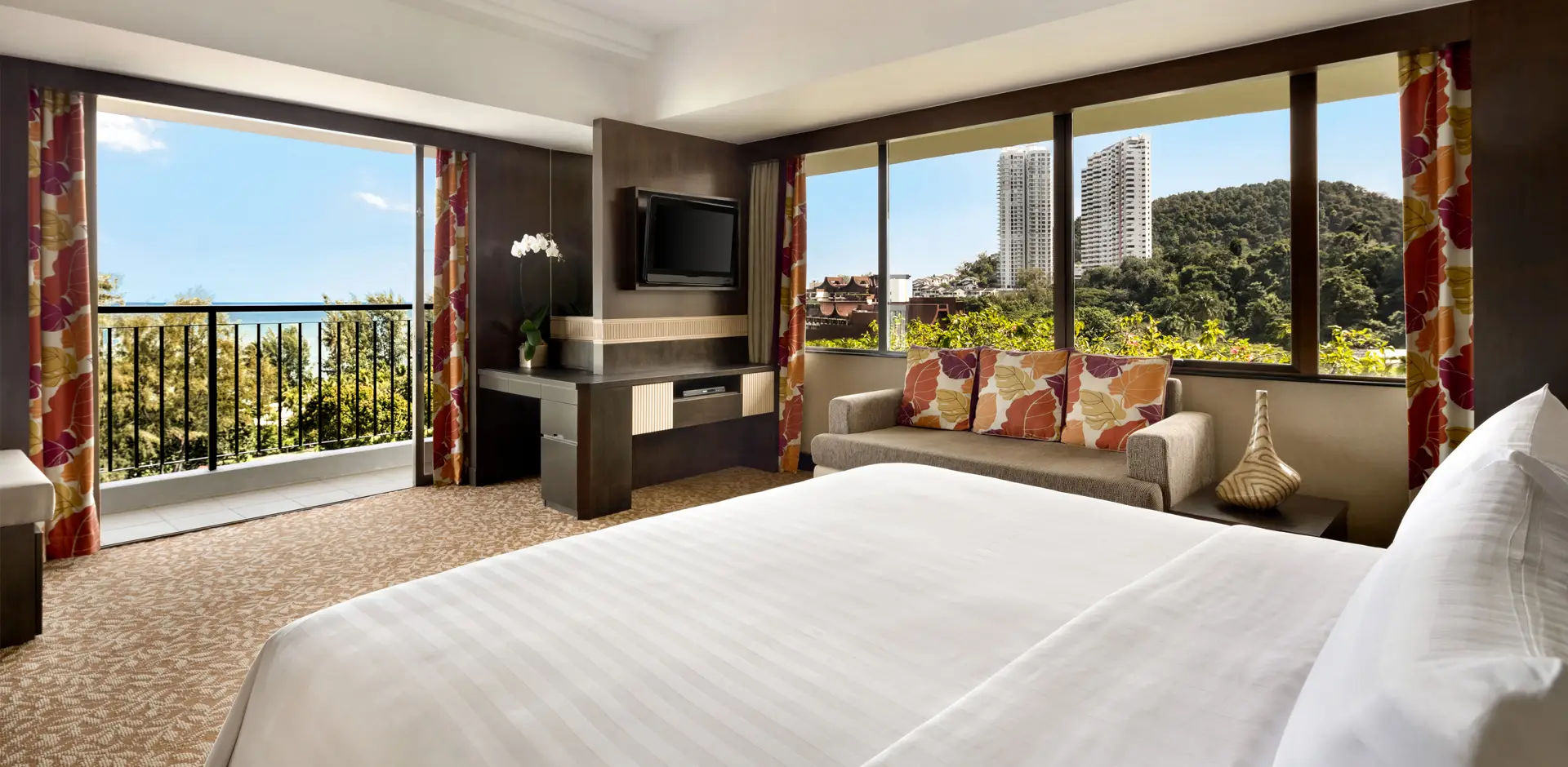 Кровати Murphy предназначены для детей. Если вы путешествуете с детьми, пожалуйста, запросите кровать Murphy при бронировании. Обратите внимание, что кровати Murphy установлены не во всех номерах. Номера с кроватями Murphy предоставляются при наличии. - Executive Seaview Room — расположенные на верхних этажах отеля и идеально подходящие для деловых гостей функциональные номера в изысканном азиатском стиле площадью 30 кв.м, состоящие из спальни, небольшой гостиной зоны, рабочей зоны с письменным столом, ванной комнаты с ванной с душем или душевой кабиной, просторного частного меблированного балкона с великолепным видом на океан.