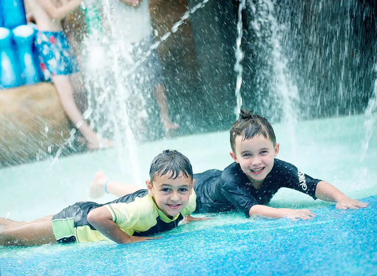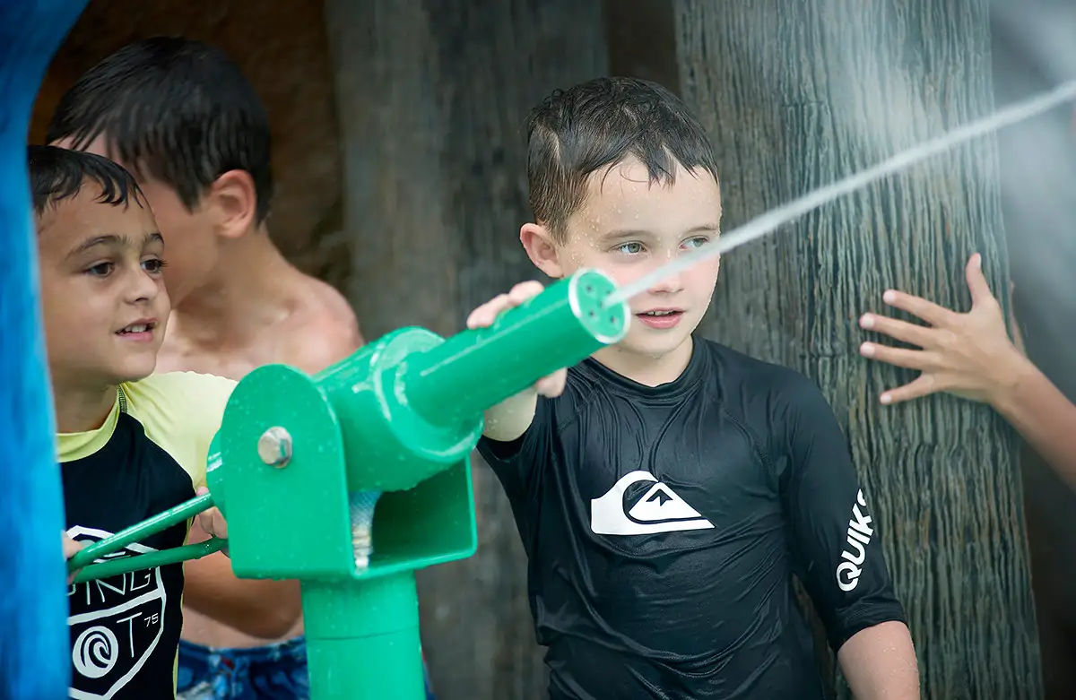 Открытая зона Splash Zone включает в себя две водные горки, посадочный бассейн (лендинг пул), водный аттракцион с опрокидывающимся ведром, водными пушками, радужным распылителем, распылителем «бабочка» и «черепаха», а также напольным струйным фонтаном, что гарантирует бесконечное веселье юным гостям. Зона Splash, тщательно спроектированная с учетом безопасности, имеет противоскользящее покрытие, позволяющее детям легко общаться с новыми друзьями, не опасаясь травм. Во всех бассейнах курорта используется специальная технологически продвинутая система управления водой, которая поддерживает естественное состояние воды, делая ее пригодной для всех гостей, включая детей.