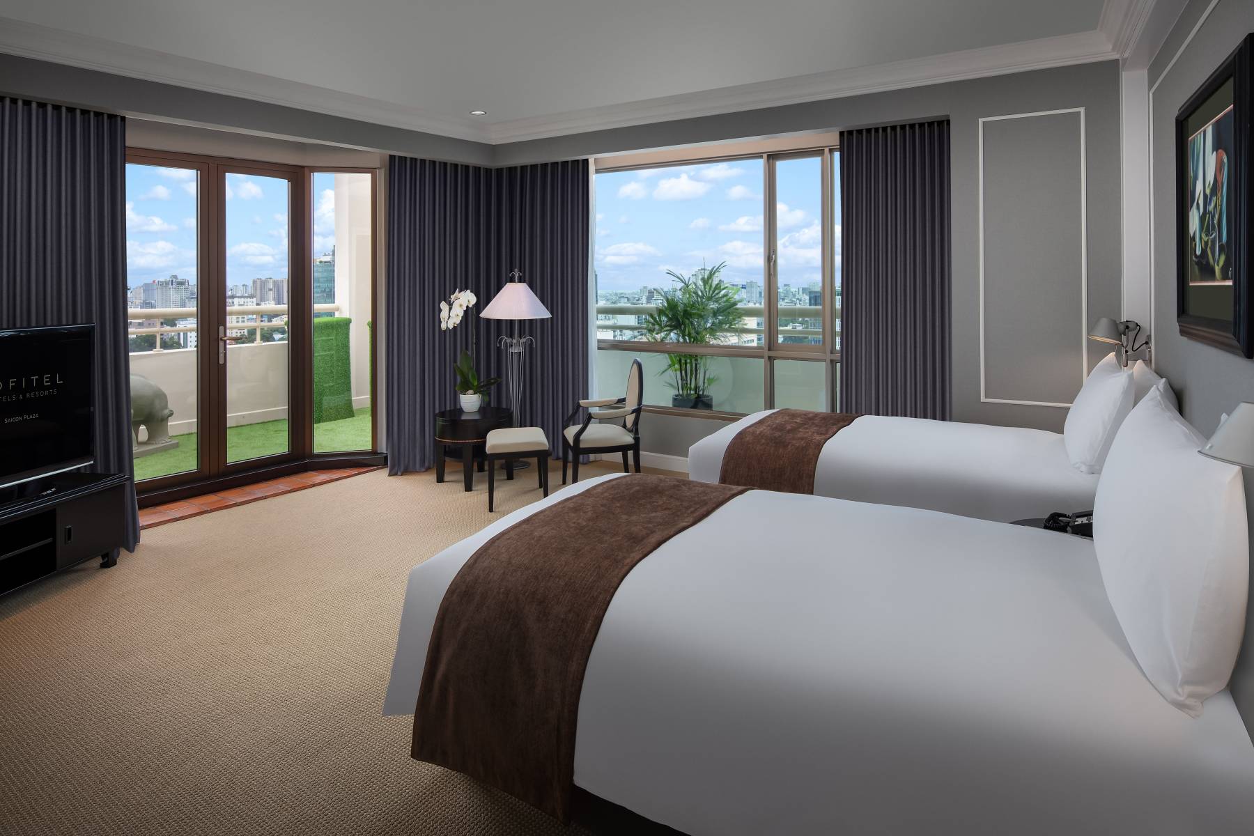 - Luxury Room — расположенные на 14-15 этажах отеля номера класса люкс площадью 30 кв.м, с панорамными окнами с видом на бурлящий жизнью Хошимин, состоящие из спальни с одной эксклюзивной двуспальной кроватью King Sofitel MyBed™ или двумя односпальными кроватями Twin Sofitel MyBed™, уютно обставленной гостиной зоны, просторной рабочей зоны с письменным столом, гардеробной, просторной ванной комнаты.