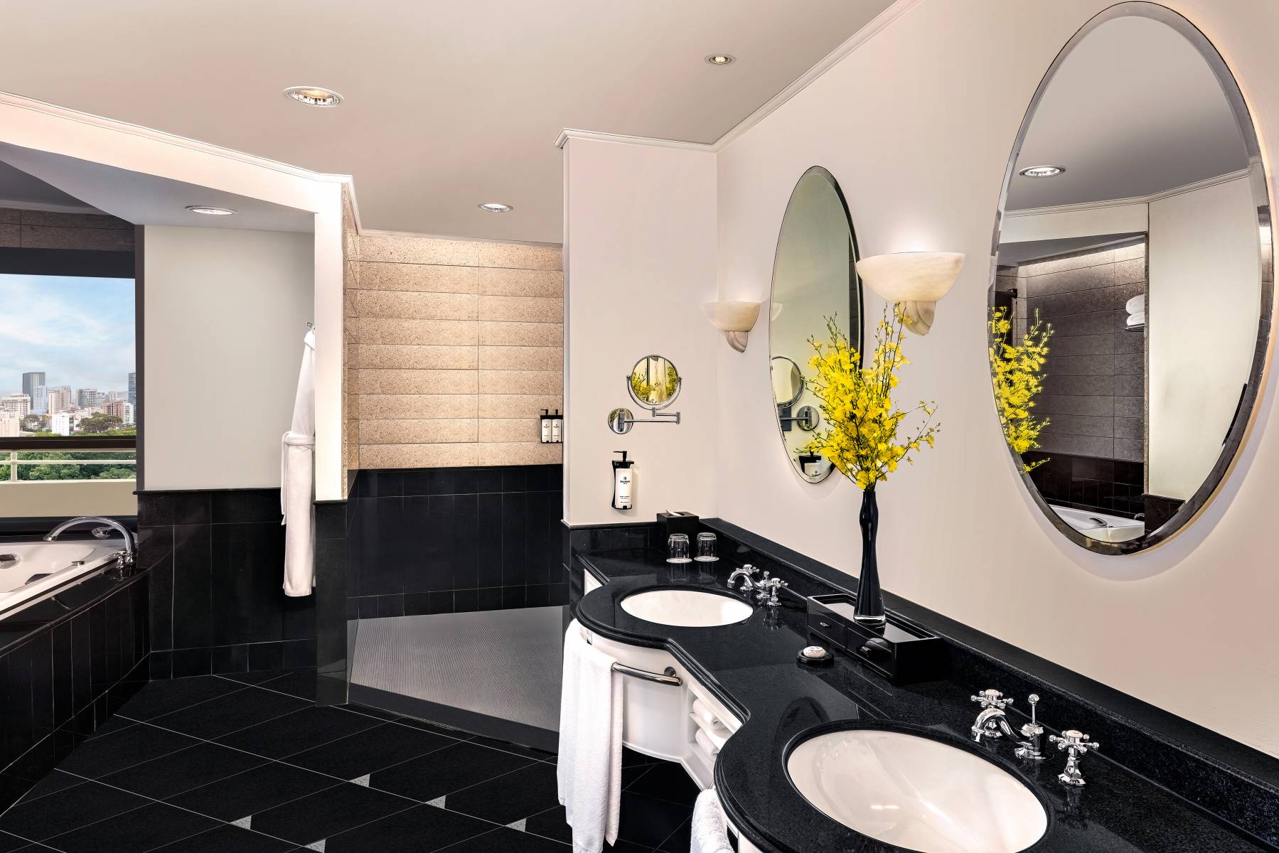 Во всех номерах имеется: оснащенная комплектом высококачественных туалетных принадлежностей ванная комната, фен, телевизор с LED-экраном 37″, прямой телефон, цифровой будильник с Bluetooth, сейф, мини-бар, принадлежности для приготовления кофе и чая, утюг, выбор подушек, рабочий стол и стул, бесплатный доступ в высокоскоростной интернет Wi-Fi.