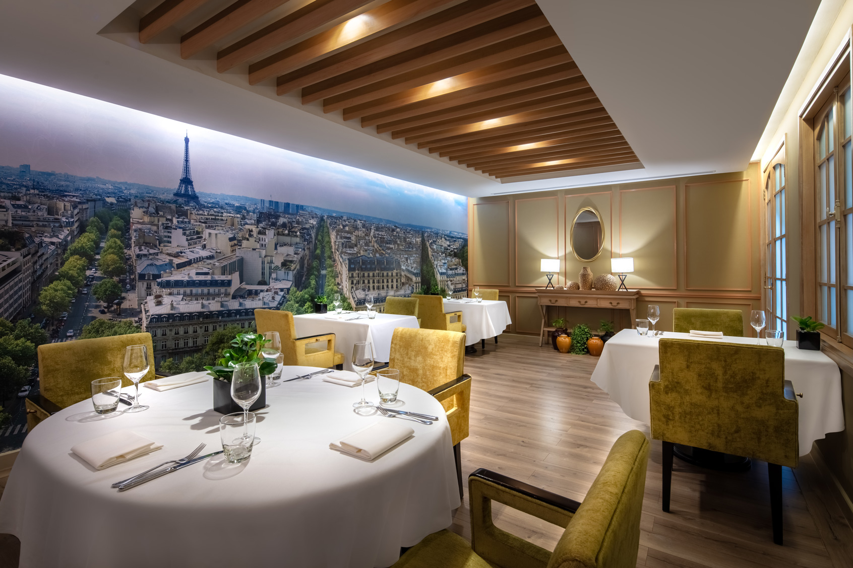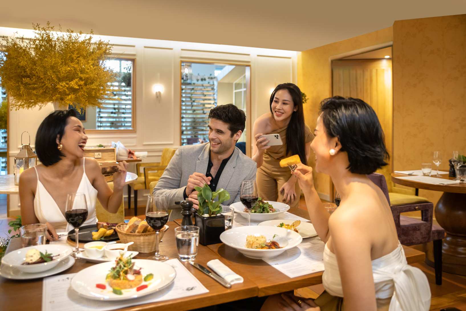 Завтрак в ресторане — это восхитительное изобилие французских, американских и азиатских блюд, включая тающую во рту выпечку и вафли, приготовленные прямо на ваших глазах. На обед вы сможете понаблюдать за работой талантливых поваров на станциях приготовления блюд, где они готовят суши, фо и вьетнамские деликатесы прямо на месте, а над вами будут лениво вращаться деревянные индокитайские потолочные вентиляторы. Изысканные французские вина, региональные сорта кофе и чая, освежающие соки и эксклюзивные крепкие напитки идеально дополнят блюда. Позвольте себе соблазниться насыщенным, сливочным домашним мороженым.
