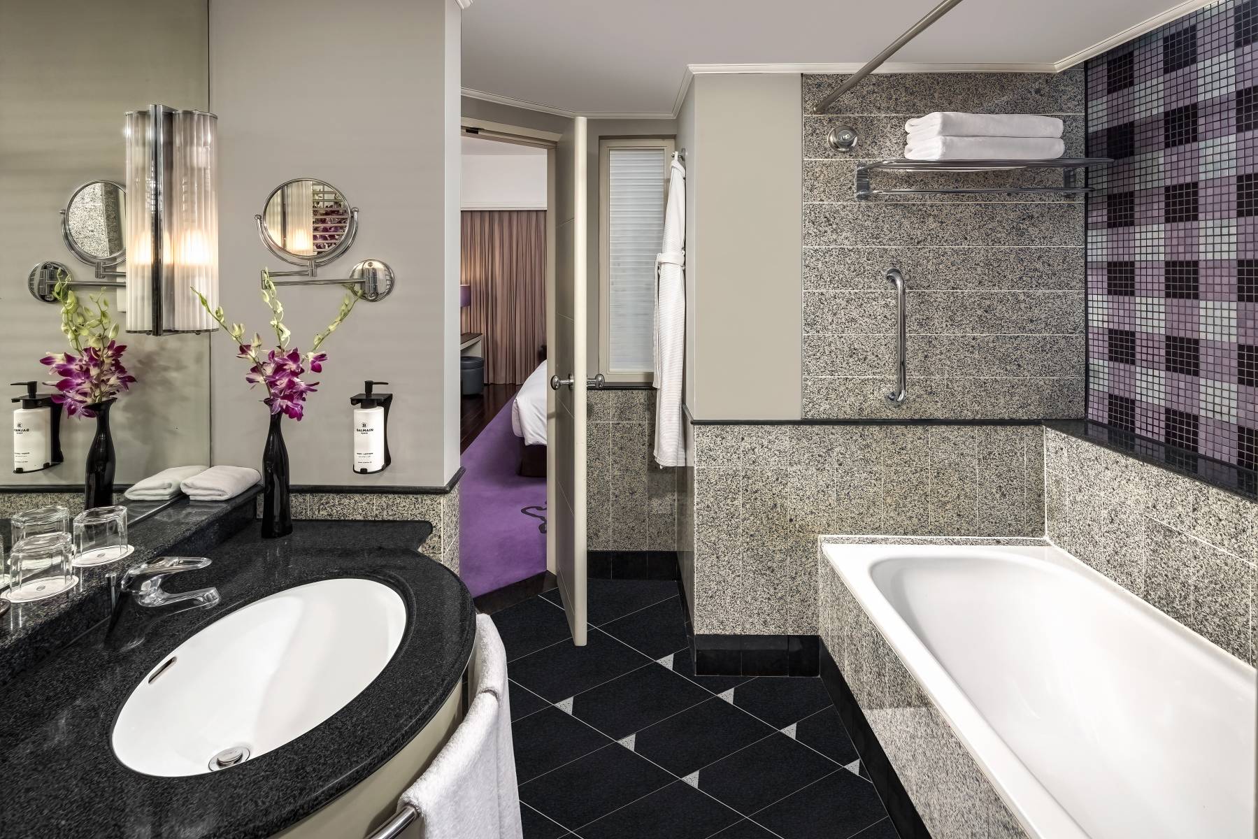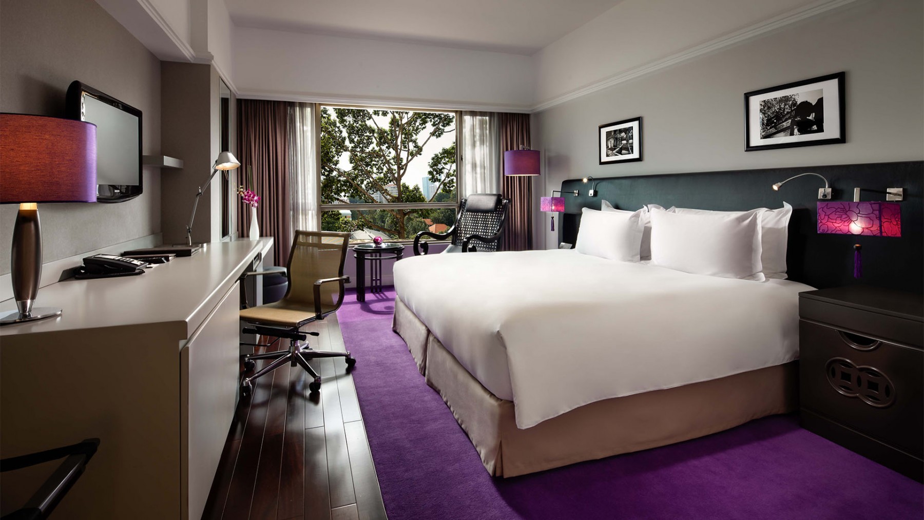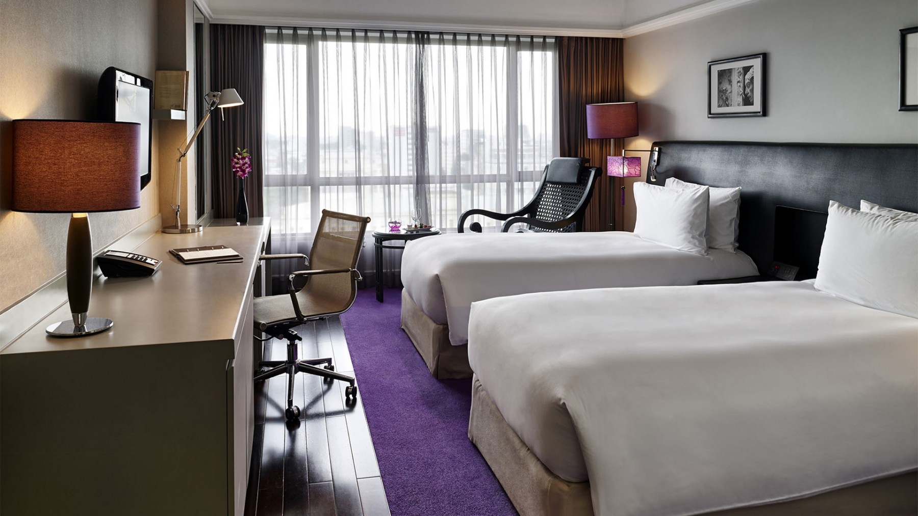- Superior Room — расположенные на 4-12 этажах отеля, стильно оформленные и выдержанные в нежных сиреневых тонах улучшенные номера площадью 30 кв.м, состоящие из спальни с одной эксклюзивной двуспальной кроватью King Sofitel MyBed™ или двумя односпальными кроватями Twin Sofitel MyBed™, уютно обставленной гостиной зоны, просторной рабочей зоны с письменным столом, гардеробной, просторной ванной комнаты с глубокой ванной.