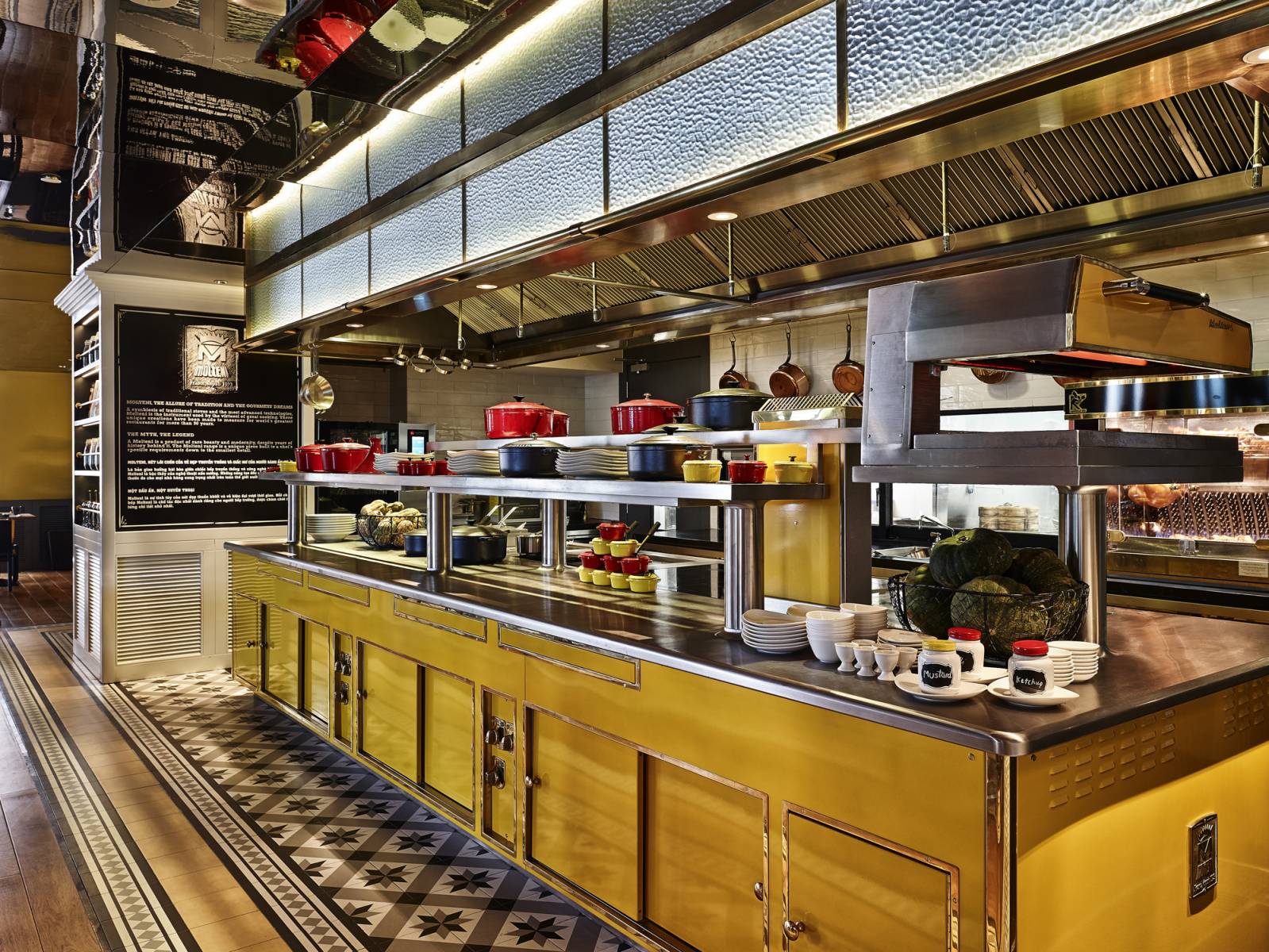 Mezz Restaurant — расположенный на втором этаже отеля уютный светлый просторный ресторан с высокими деревянными потолками, ретро-плиткой на полу, винными стеллажами, отдельным залом и современной мебелью. Ключевой особенностью ресторана является потрясающая, яркая, специально построенная фирменная желтая французская печь Molteni, а также различные станции для приготовления блюд азиатской кухни, барбекю и суши. Интерактивный ресторан предлагает широкий выбор блюд со всей Азии и мира, приготовленных на печи Molteni. Фирменные блюда доступны по меню à la carte.