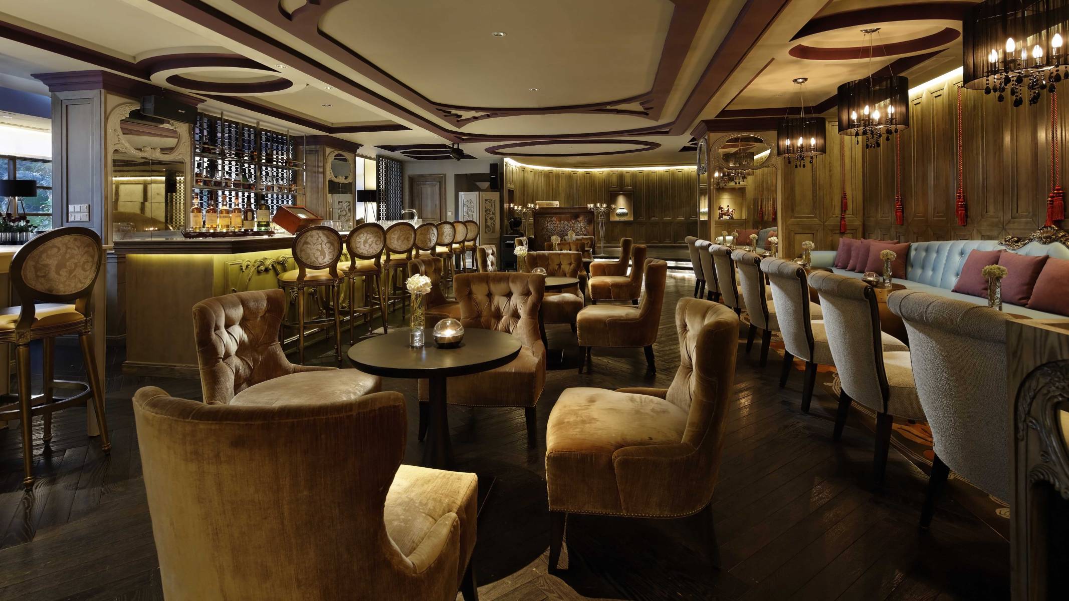 Boudoir Lounge — это уютное кафе и бар, расположенное рядом с лобби отеля. Днем это гостеприимное место для важной встречи с коллегами или непринужденного общения с друзьями за изысканными легкими закусками и ароматным кофе из местных сортов. А вечерами — это место для частных встреч и интересных разговоров в окружении роскошного бархата и темного дерева, создающих мистическую атмосферу бара в стиле спикизи 1920-х годов в Сайгоне. Здесь можно насладиться классическими напитками и оригинальными фирменными коктейлями, изысканным шампанским, импортными спиртными напитками и винами из Франции и со всего мира.