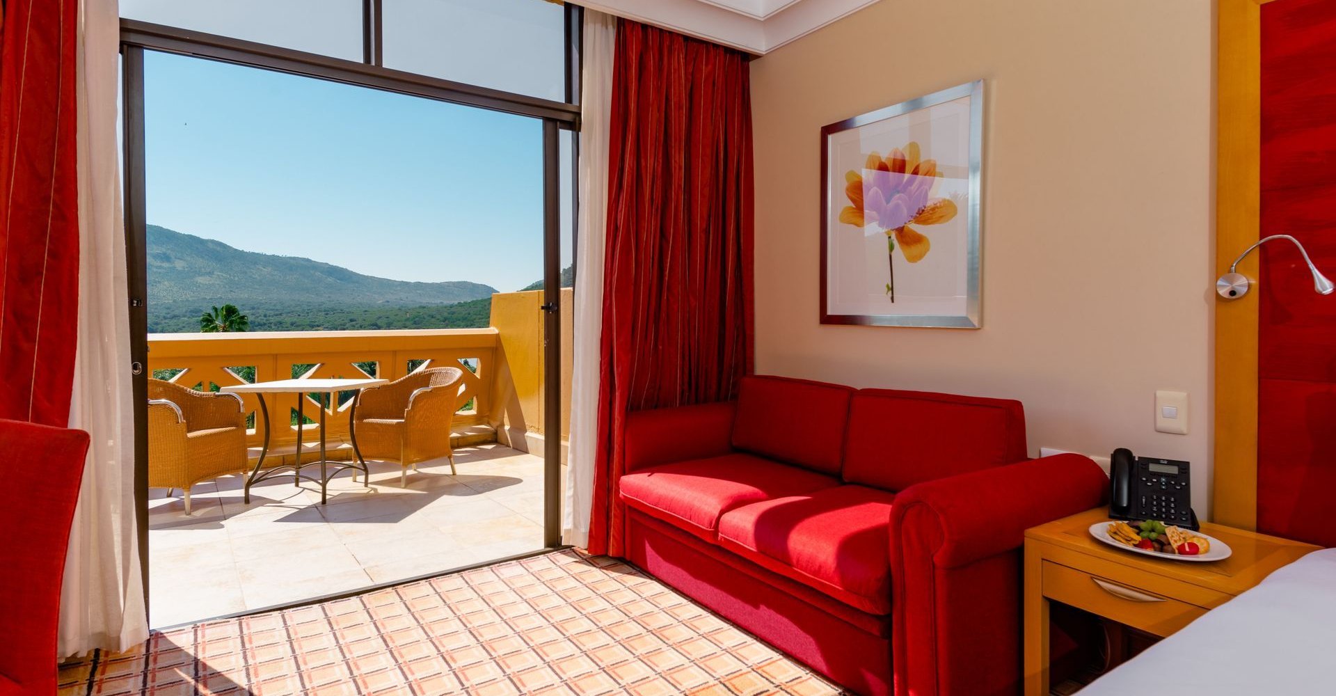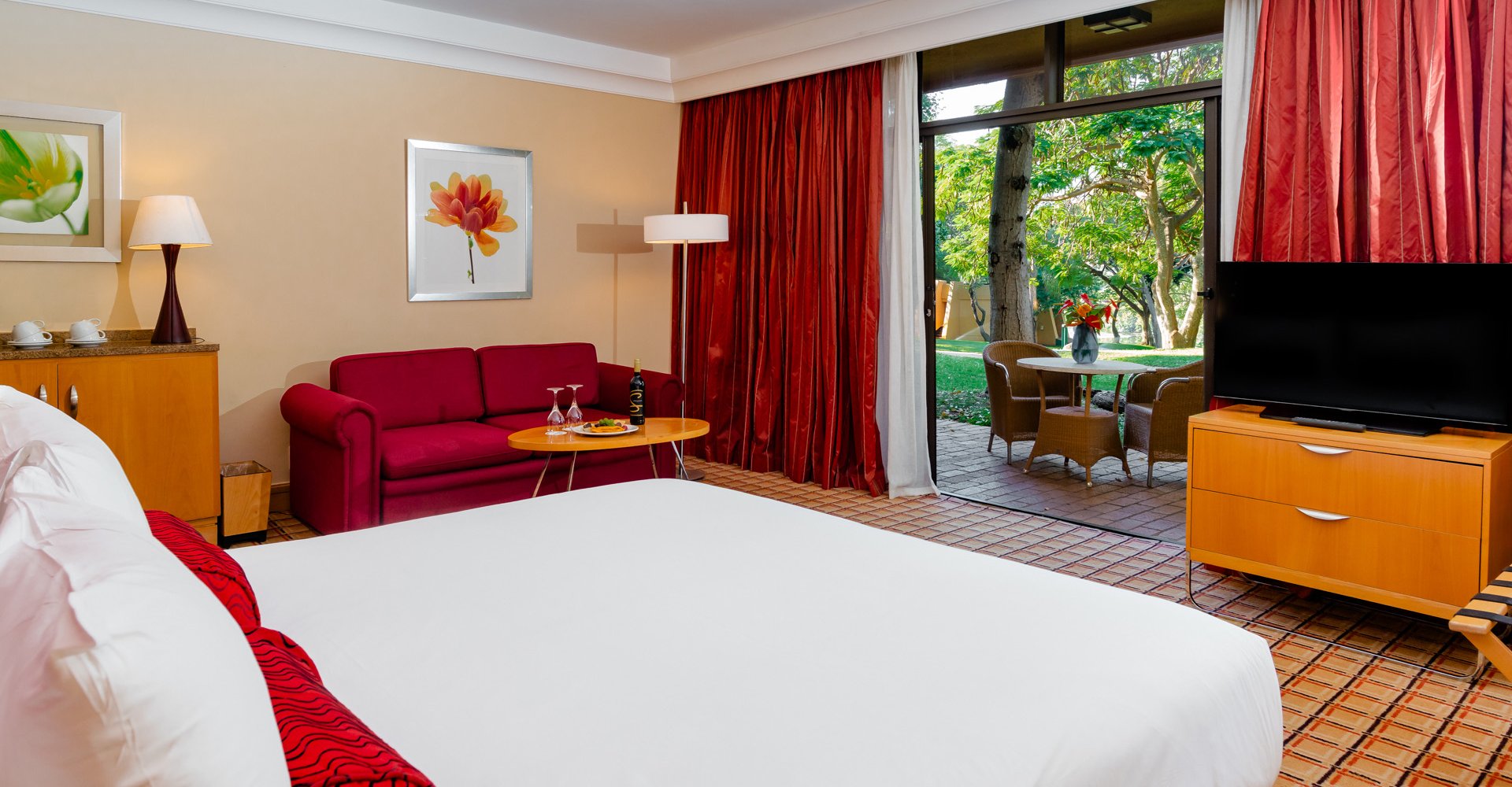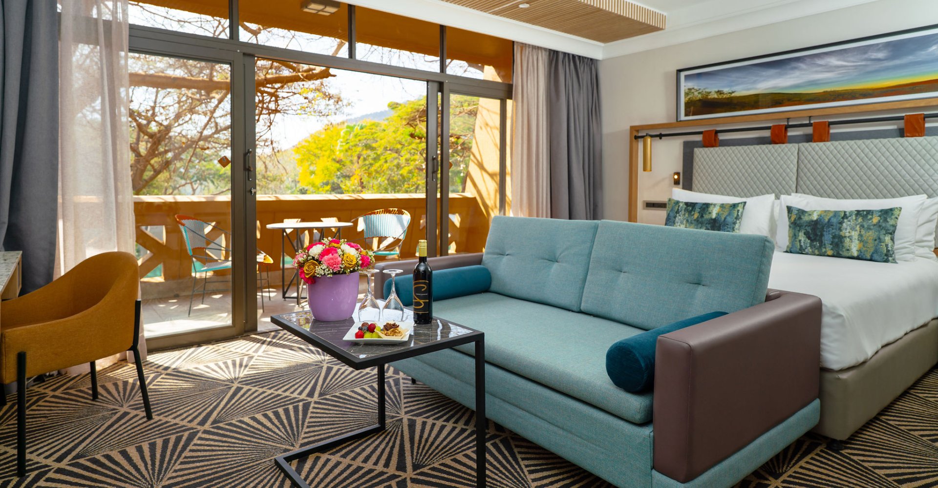 - Ground Floor Superior Luxury Room Re-Energised — расположенные на первом этаже отеля недавно обновленные роскошные номера повышенной комфортности площадью 40 кв.м, состоящие из спальни с одной двуспальной кроватью King-size, уютно обставленной просторной гостиной зоны, рабочей зоны с письменным столом, ванной комнаты с душевой кабиной. Насладитесь утрами, проведенными в саду и чистым воздухом Пиланесберга.