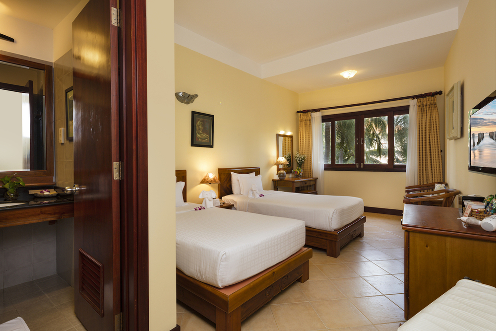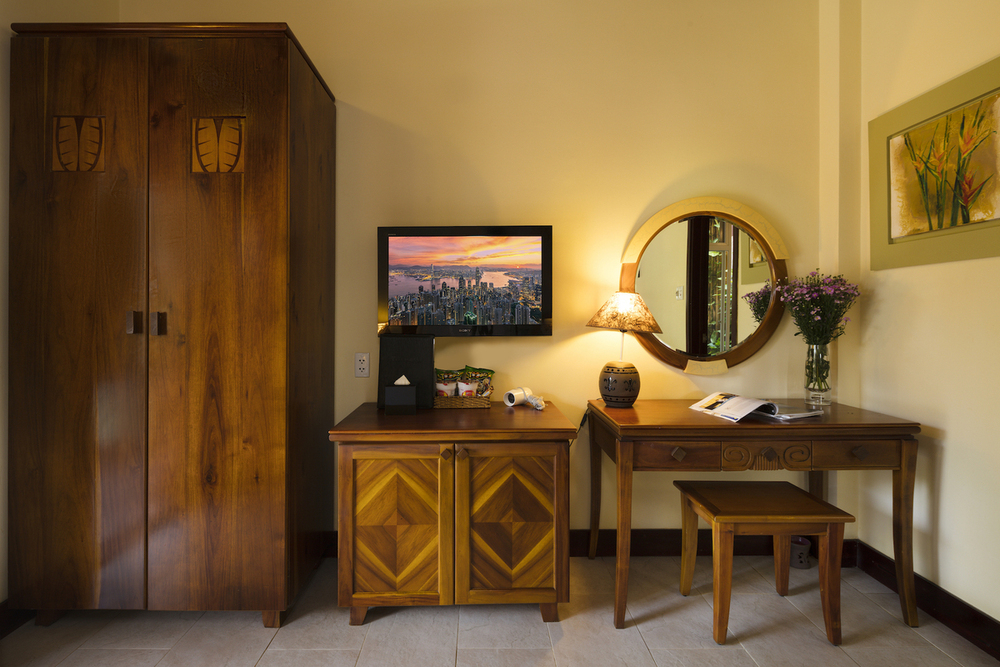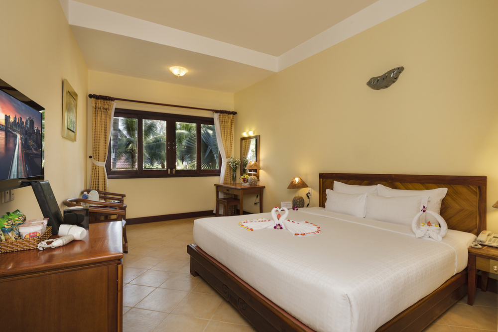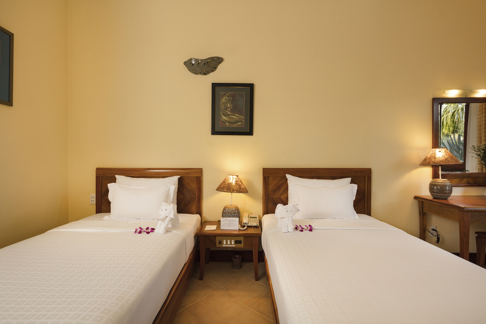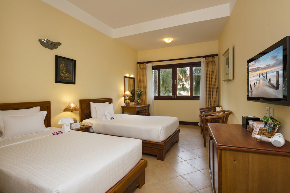 - Bungalow Superior Garden View — расположенные посреди тропического сада, всего в нескольких шагах от пляжа комфортные улучшенные номера-бунгало, состоящие из спальни, уютно обставленной гостиной зоны, рабочей зоны с письменным столом, ванной комнаты. В номерах дополнительно есть потолочный вентилятор.