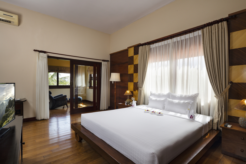 - Bungalow Deluxe Beach Front — расположенные всего в нескольких шагах от пляжа роскошные номера-бунгало с видом на море, состоящие из спальни, уютно обставленной гостиной зоны, рабочей зоны с письменным столом, ванной комнаты. В номерах дополнительно есть потолочный вентилятор.