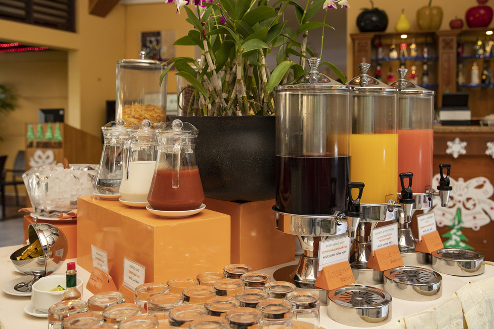 Ресторан отеля приглашает гостей насладиться изысканными блюдами азиатской и европейской кухонь. Столики сервируются как в крытом салоне, так и на террасе на открытом воздухе.