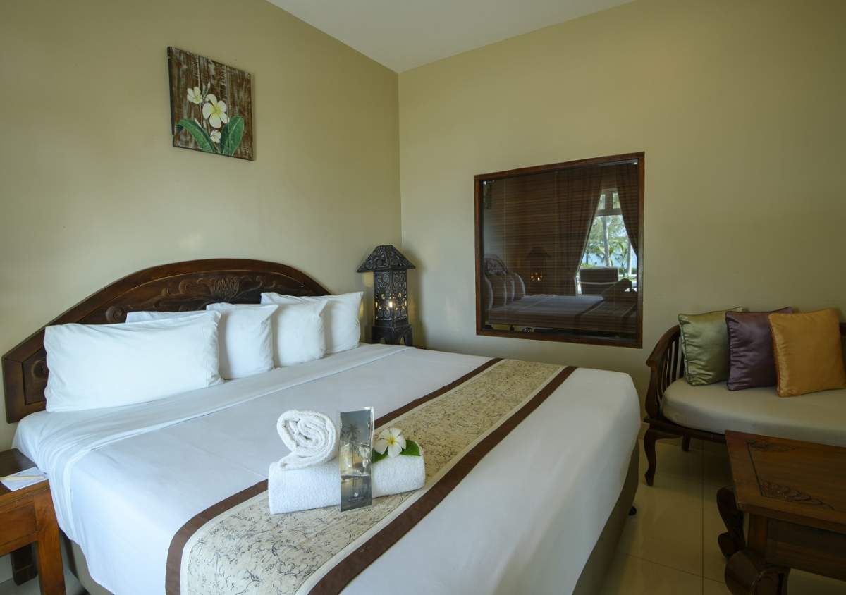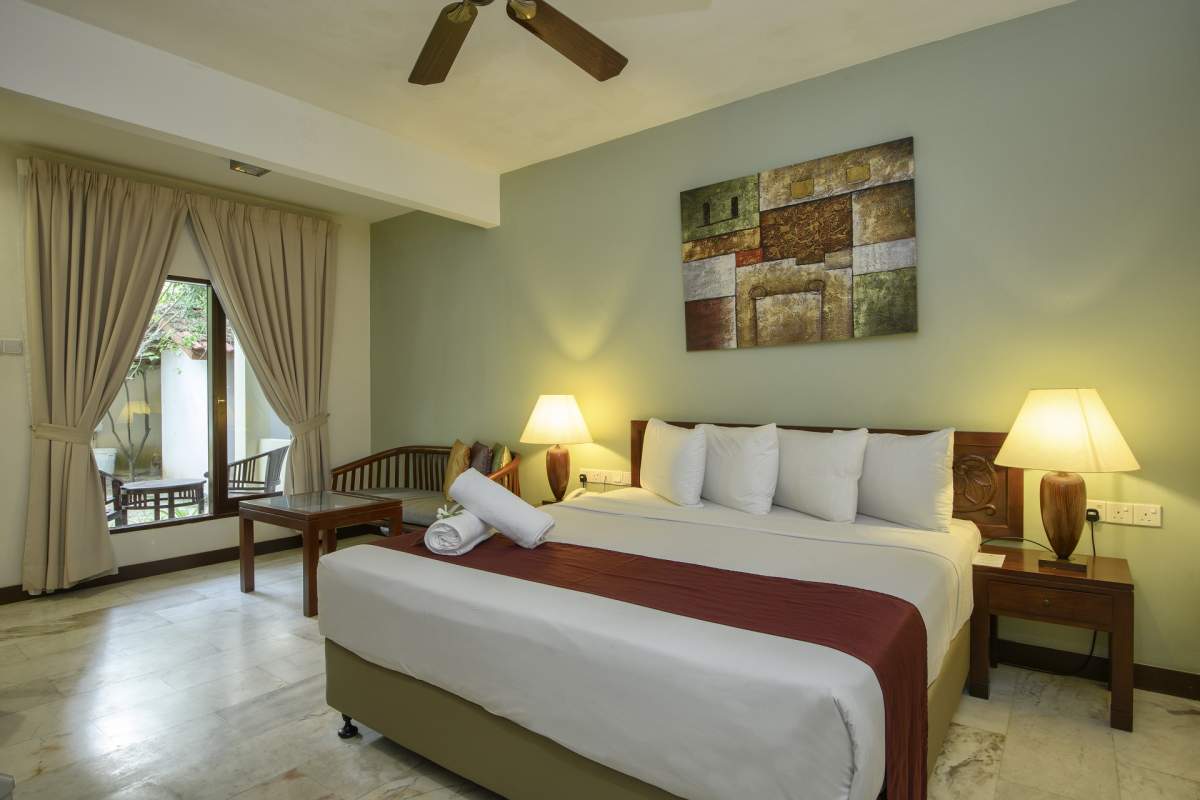 Доступны смежные номера. - Garden Villa — 31 расположенная среди нетронутых, пышных садов с экзотическими фруктовыми деревьями и тропическими растениями вилла площадью 53 кв.м, состоящая из спальни с одной двуспальной кроватью King-Size или двумя кроватями Hollywood Twin, каждая со своей собственной ванной комнатой, туалетом и отдельным меблированным балконом или террасой с шезлонгом, уютно обставленной гостиной зоны с раскладным диваном и журнальным столиком, рабочей зоны с письменным столом, душевой на открытом воздухе и ванны.