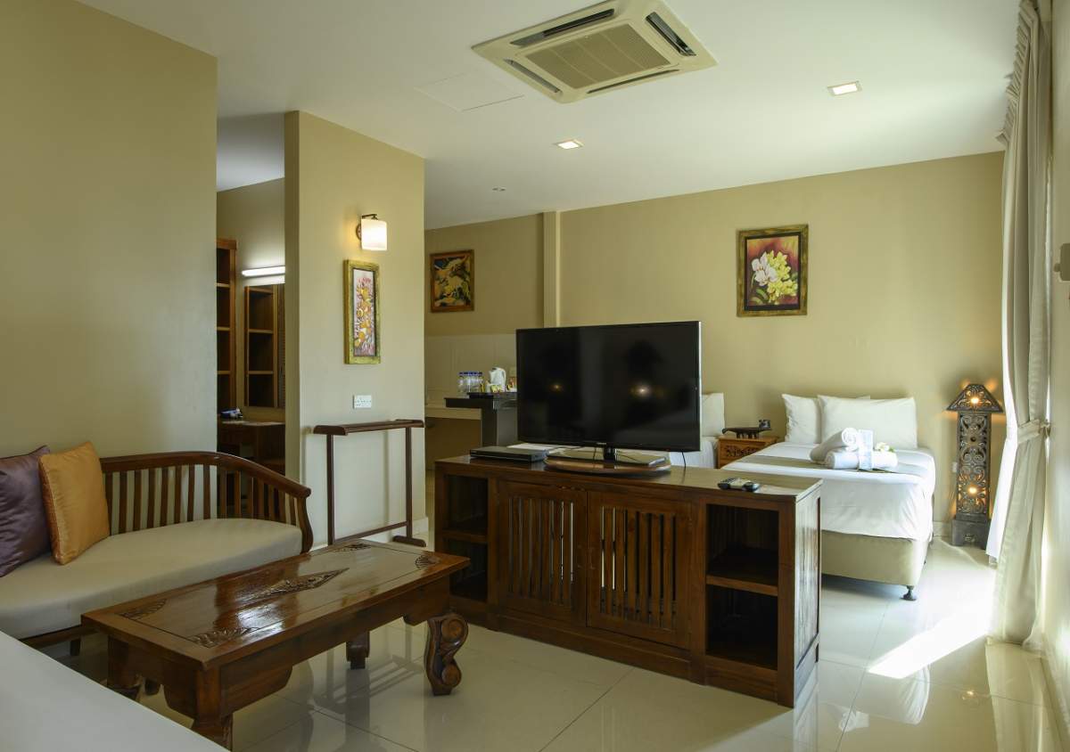- Family Beach Suite — 4 предназначенных для путешественников, предпочитающих более роскошный отдых семейных пляжных люксов площадью 60 кв.м, с захватывающим видом на Андаманское море, состоящие из двух спален, одна из которых с одной двуспальной кроватью King-Size, а вторая — с двумя односпальными кроватями, каждая со своей гостиной зоной с креслом для отдыха и журнальным столиком, рабочей зоной с письменным столом, ванной комнатой с эксклюзивной ванной премиум-класса и тропическим душем, туалетом и большим балконом или террасой с шезлонгом.