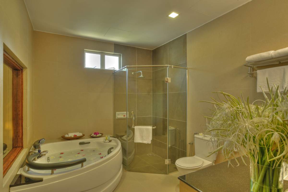 Дополнительно на виллах есть потолочный вентилятор. - Beach Facing Villa — 11 расположенных на пляже роскошных вилл площадью 53 кв.м, с потрясающим панорамным видом на Андаманское море, состоящих из спальни с одной двуспальной кроватью King-Size, уютно обставленной гостиной зоны, рабочей зоны с письменным столом, ванной комнаты с ванной, туалета, душевой на открытом воздухе, частного меблированного балкона или террасы.