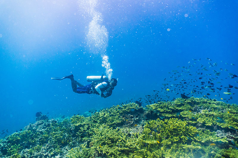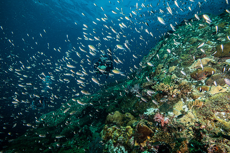 Здесь расположено более 30 мест для дайвинга, богатых как твердыми, так и мягкими кораллами. Здесь вы увидите черепах, рифовых акул (безвредных для человека), а также различные виды морских животных, включая мурен, рыб-ангелов, барракуд, рыб-наполеонов, спинорогов, радужных бегунов, гигантских скатов, каракатиц, осьминогов, голожаберных и др.