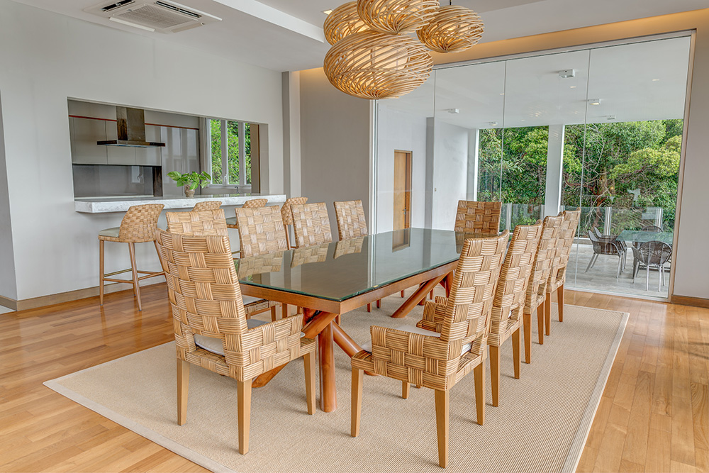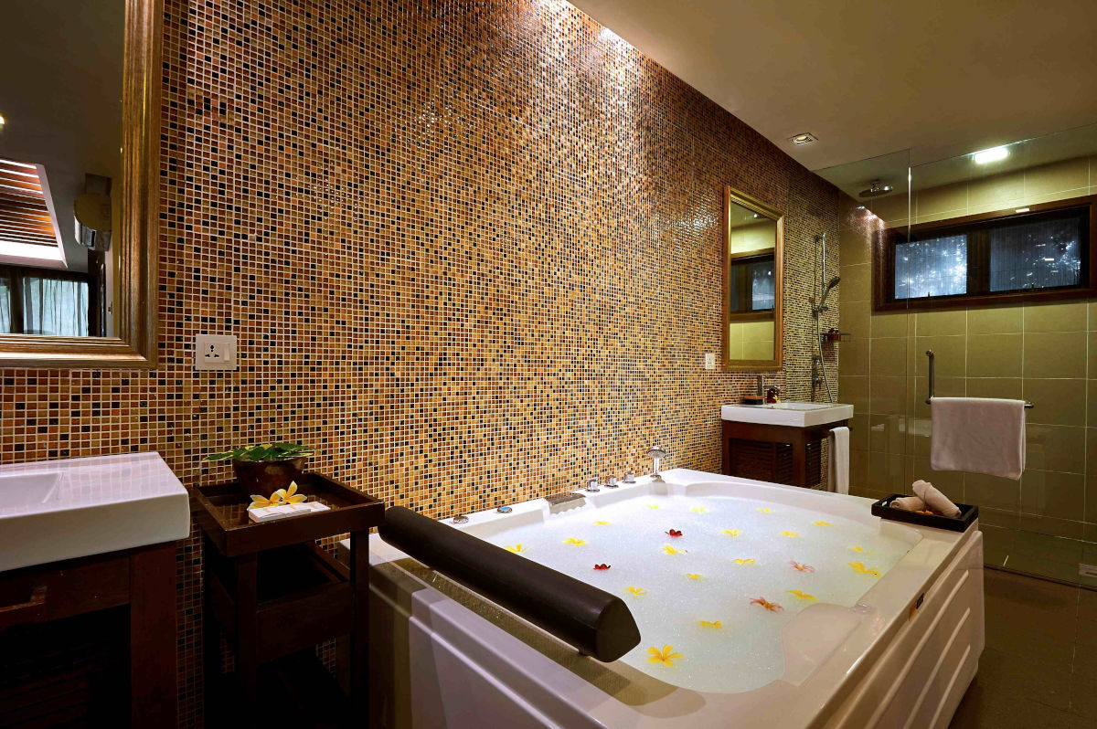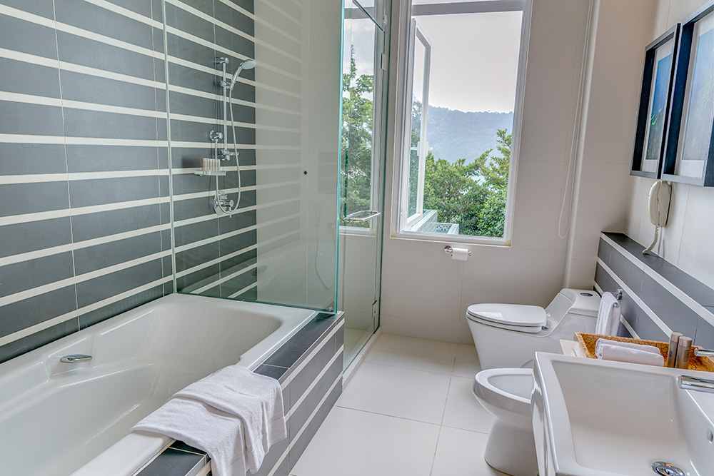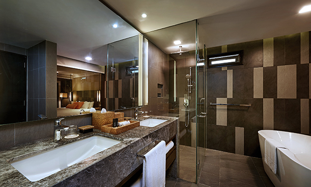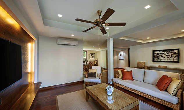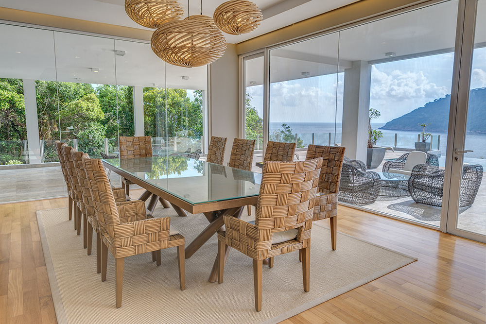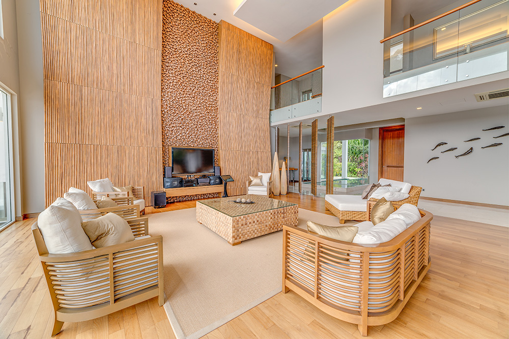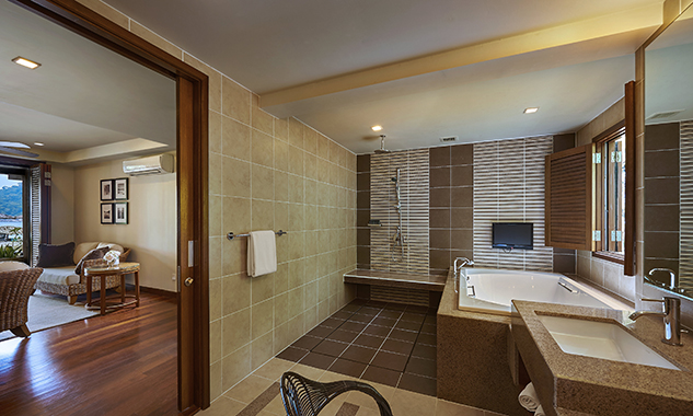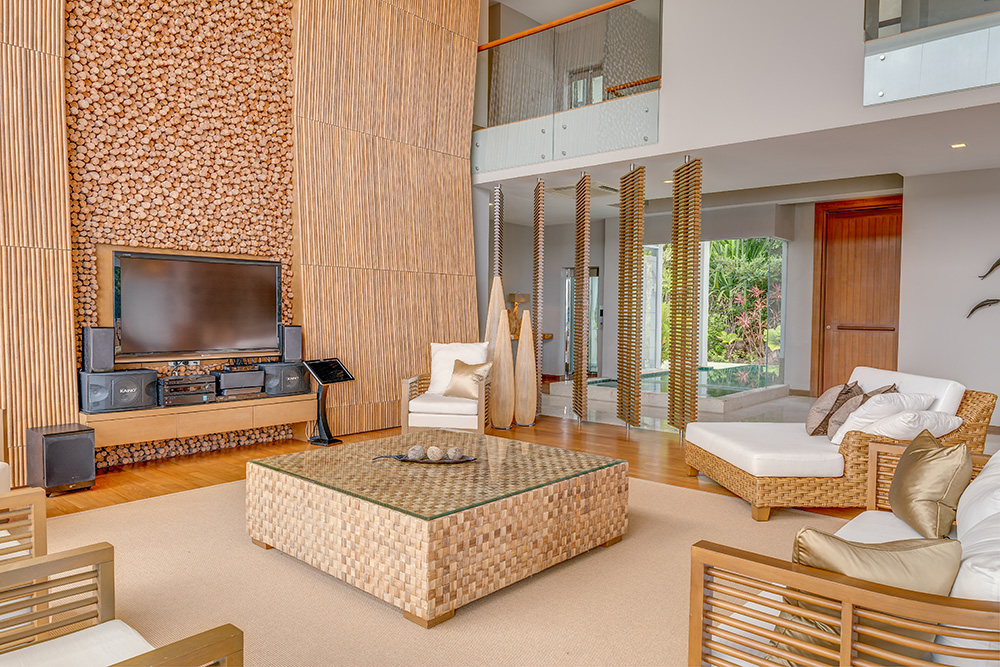 Гостям предоставляются услуги личного дворецкого. - The Taaras Villa — расположенная на вершине скалы и идеально подходящая для тех, кто ищет полного уединения роскошная частная вилла площадью более 1440 кв.м, с отдельным входом и потрясающим видом на Южно-Китайское море, состоящая из пяти спален, просторных гостиных и столовых внутри и снаружи, оборудованной мини-кухни, оборудованного тренажерного зала, гардеробных, ванных комнат (ванная комната при главной спальне с большой круглой ванной и LCD-телевизором), меблированных террас, частного пейзажного бассейна с видом на океан.