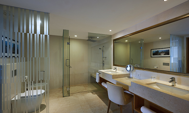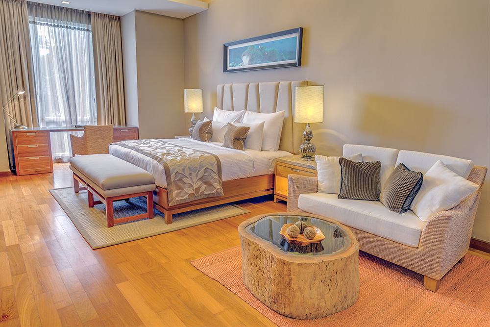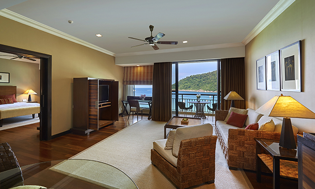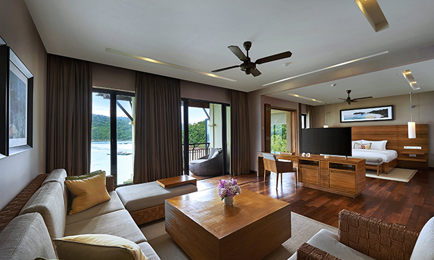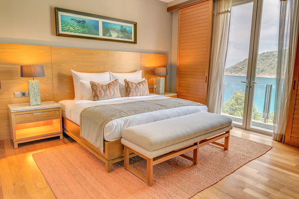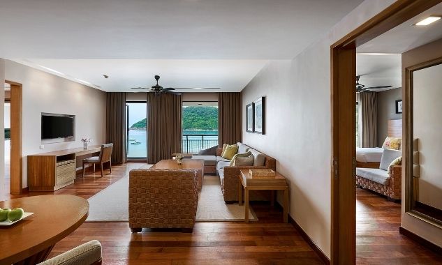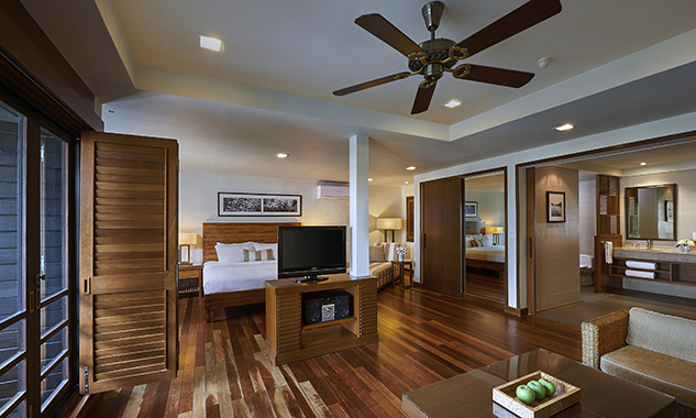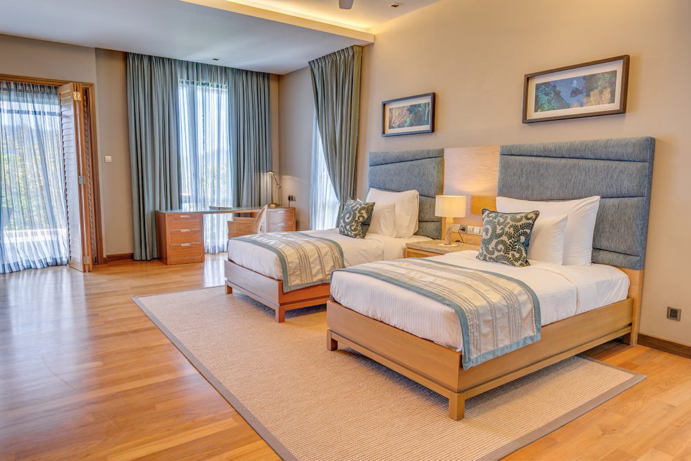 - Two-Bedroom Bayview Suite — роскошный просторный люкс площадью 138 кв.м, с красивым видом на залив, состоящий из двух спален, одна из которых с одной большой кроватью King-size, а вторая — с двумя односпальными кроватями, отдельной современной гостиной комнаты с изготовленной на заказ мебелью и произведениями искусства, гардеробной, большой ванной комнаты с ванной, отдельной душевой с тропическим душем, частного меблированного балкона с видом на лесную зону или панорамным видом на океан.