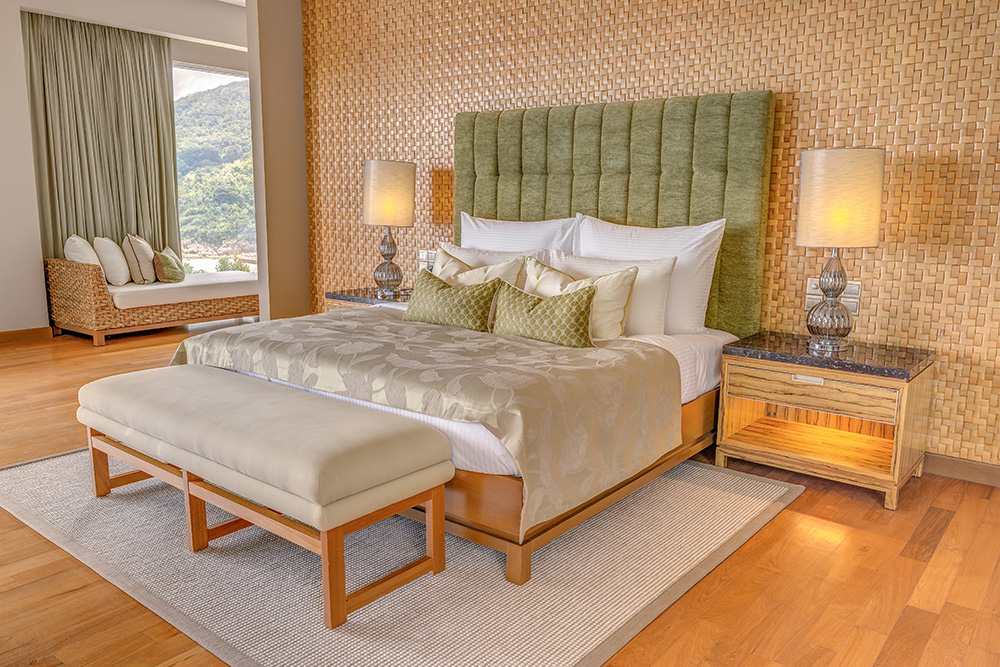 - Cliff Bay Suite — прекрасно оборудованные люксы площадью 92 кв.м, состоящие из спальни с одной большой кроватью King-size, отдельной просторной гостиной комнаты, гардеробной, большой роскошной ванной комнаты с ванной, отдельной душевой с тропическим душем и раковинами для двоих, частного меблированного балкона с захватывающим видом на залив, лесную зону или океан.
