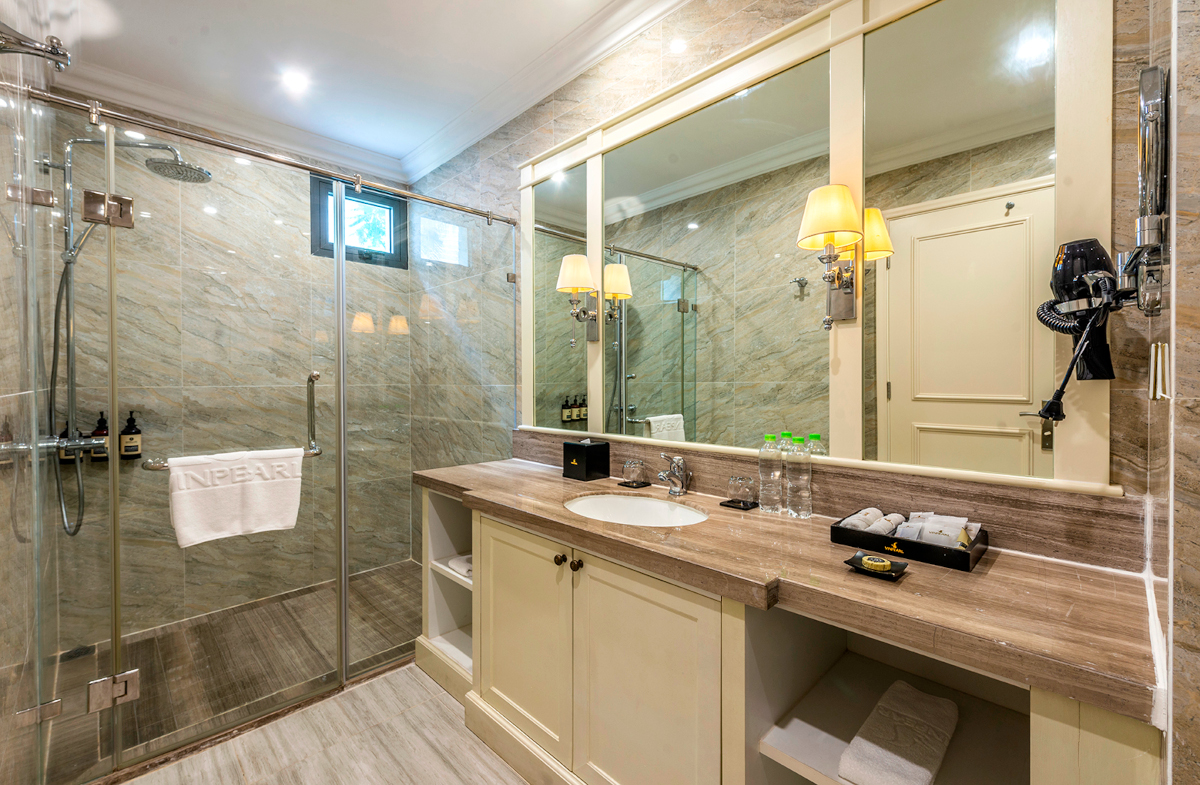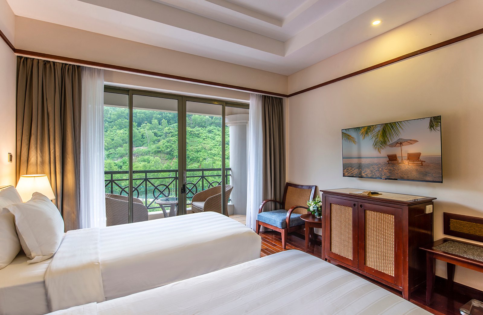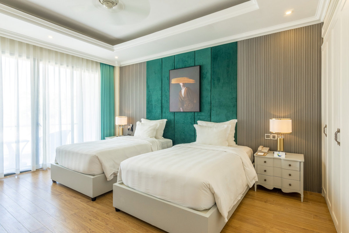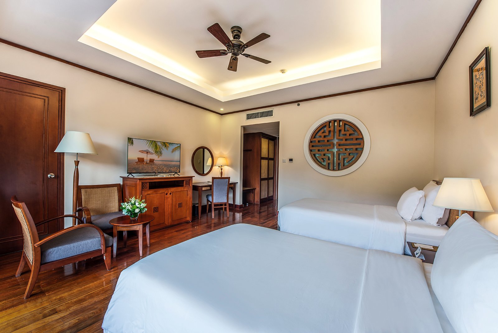 Рассчитаны для максимум 4 гостей: 3 взрослых и 1 ребенка или 2 взрослых и 2 детей. - Grand Deluxe Twin Bed Room — расположенные вдоль пляжа и оснащенные всем необходимым для комфортного отдыха номера площадью 42 кв.м, состоящие из спальни с двумя кроватями Twin, уютно обставленной гостиной зоны, рабочей зоны с письменным столом, гардеробной, ванной комнаты с ванной и отдельной душевой кабиной, частного меблированного балкона.