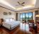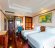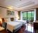 Рассчитана для максимум 12 гостей. - Deluxe Queen Bed Room — расположенные вдоль пляжа и оснащенные всем необходимым для комфортного отдыха номера площадью 32 кв.м, состоящие из спальни с одной двуспальной кроватью Queen-size, небольшой гостиной зоны, рабочей зоны с письменным столом, гардеробной, ванной комнаты с ванной и отдельной душевой кабиной, частного меблированного балкона.